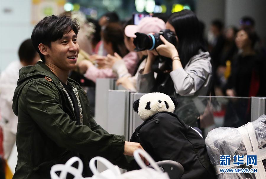 3月25日,中国花样滑冰队队员韩聪抵达机场。 当日,结束征战2019年花样滑冰世界锦标赛的中国花样滑冰队抵达北京首都国际机场。 新华社记者王东震摄