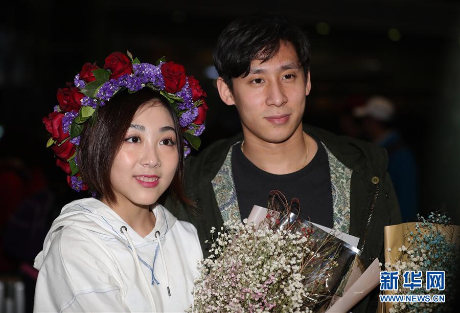 3月25日,中国花样滑冰队队员隋文静(左)和韩聪抵达机场。 当日,结束征战2019年花样滑冰世界锦标赛的中国花样滑冰队抵达北京首都国际机场。 新华社记者王东震摄