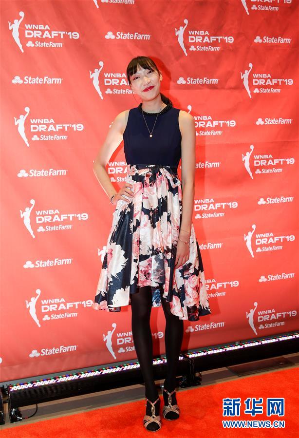 4月10日,韩旭在选秀活动前的红毯仪式上留影。 当日,中国篮球运动员韩旭抵达在美国纽约举行的2019年WNBA选秀活动现场。 新华社记者王迎摄