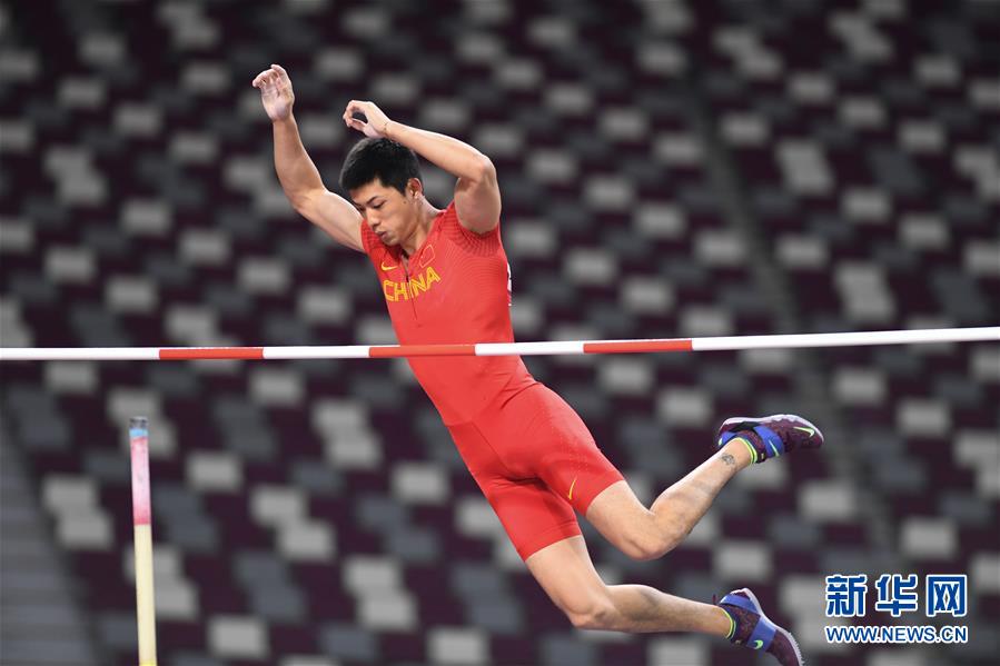 4月21日,中国选手黄博凯在比赛中。 当日,在第23届亚洲田径锦标赛男子撑杆跳高决赛中,菲律宾选手埃内斯特以5米71的成绩获得冠军,中国选手张伟和黄博凯均以5米66的成绩获得亚军和季军。 新华社记者邬惠我摄