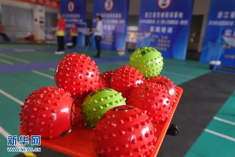 这是5月16日拍摄的兜球。 当日,由浙江省老年人体育协会主办的2019年全国部分省市老年人兜球教练员裁判员培训班在宁波余姚举行,来自各地近百位学员参加本次培训。 新华社发(张燕辉 摄)