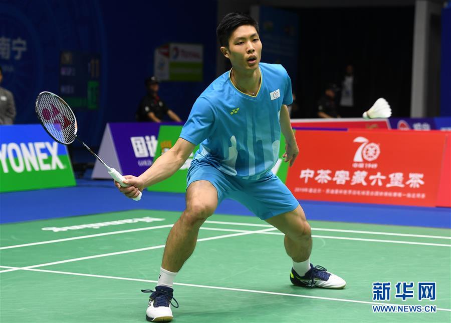 5月22日,中国台北队选手周天成在男子单打比赛中回球。他以2比0战胜韩国队选手李东根。新华社记者李俊东摄