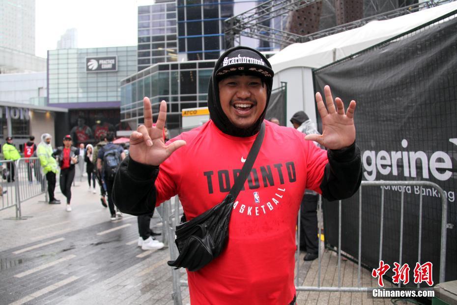 当地时间6月10日,美国职业篮球联赛(NBA)2018-2019赛季总决赛在加拿大多伦多迎来第五回合比赛。在此前四个回合的较量中,猛龙队以三胜一负的战绩率先取得赛点。图为多伦多猛龙队球迷来到球场外,准备为猛龙队加油助威。中新社记者 余瑞冬 摄