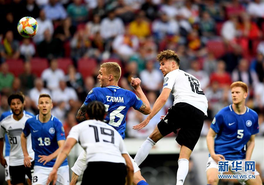 6月11日,德国队球员格雷茨卡(右二)在比赛中射门。 当日,在2020年欧洲足球锦标赛预选赛C组比赛中,德国队主场以8比0战胜爱沙尼亚队。 新华社记者逯阳摄