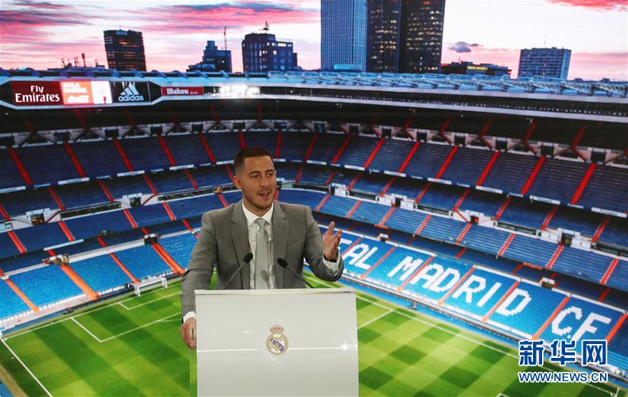 6月13日,西班牙皇家马德里队在马德里举行新闻发布会,从英超切尔西队转会而来的比利时前锋阿扎尔正式亮相。