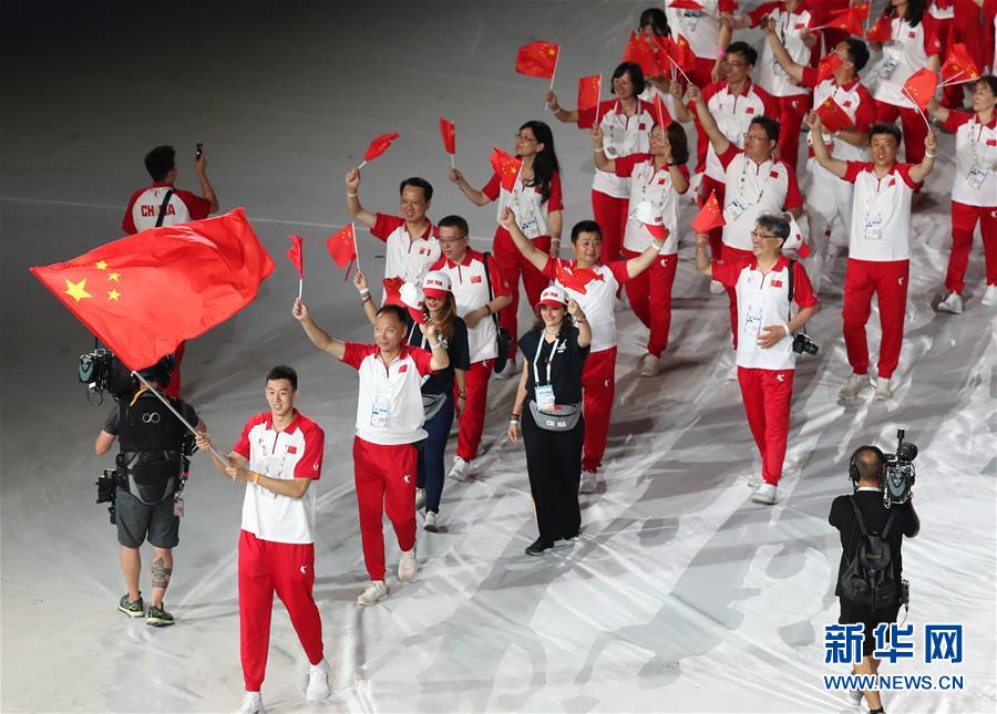 7月3日,中国大学生体育代表团在开幕式上入场。 当日,第30届世界大学生夏季运动会在意大利那不勒斯开幕。