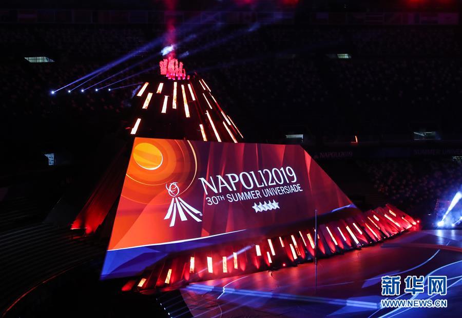 7月3日,虚拟主火炬被点燃。 当日,第30届世界大学生夏季运动会在意大利那不勒斯开幕。 新华社记者 单宇琦 摄