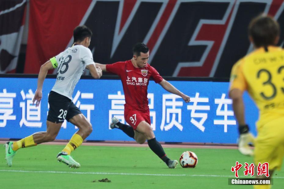 7月17日晚,2019赛季中超联赛第18轮上海上港主场对阵河北华夏幸福的比赛在上海八万人体育场进行。第39分钟,陈彬彬的抽射破门打破僵局;第84分钟,胡尔克推射破门;第86分钟,奥斯卡再下一城。全场比赛结束,上海上港主场3-0击败河北华夏幸福。继续排在积分榜的第3位,与恒大相同积分继续紧追国安,华夏则是继续排在第12位。图为陈彬彬(左2)边路传中。申海 摄