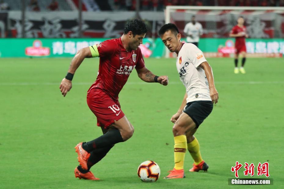7月17日晚,2019赛季中超联赛第18轮上海上港主场对阵河北华夏幸福的比赛在上海八万人体育场进行。第39分钟,陈彬彬的抽射破门打破僵局;第84分钟,胡尔克推射破门;第86分钟,奥斯卡再下一城。全场比赛结束,上海上港主场3-0击败河北华夏幸福。继续排在积分榜的第3位,与恒大相同积分继续紧追国安,华夏则是继续排在第12位。图为“绿巨人”胡尔克(左)带球突破。申海 摄