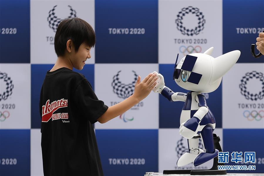 7月22日,一名小朋友和东京奥运会吉祥物Miraitowa机器人击掌。 当日,为纪念东京奥运会和残奥会吉祥物名称揭晓一周年,东京奥组委在日本东京举办活动,揭晓东京奥运会、残奥会吉祥物机器人。吉祥物机器人将在比赛中与运动员和观众互动。 新华社记者杜潇逸摄