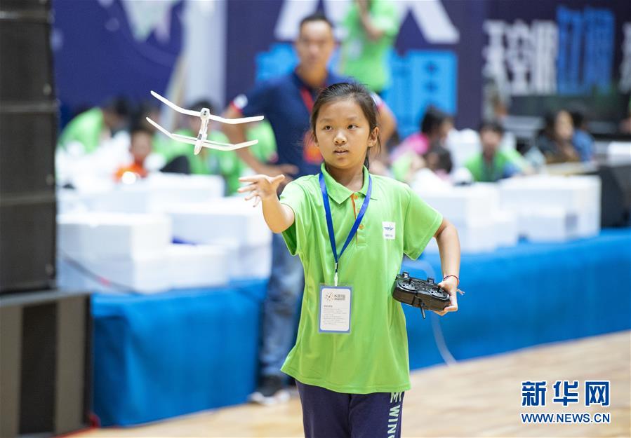 8月4日,选手操控微型双翼遥控模型飞机起飞。 第21届“飞向北京·飞向太空”全国青少年航空航天模型教育竞赛活动总决赛8月3日在宁夏银川体育馆开幕。来自北京、上海、宁夏等省市区共49支代表队的选手将在为期三天的比赛中展开角逐。 新华社发(杨植森摄)