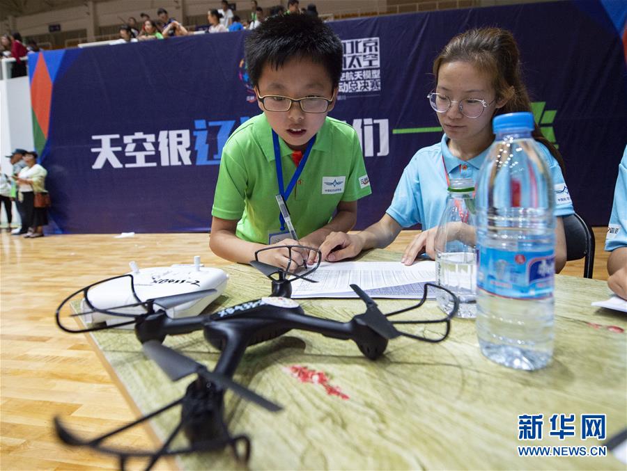 8月4日,一名参赛选手(左)在比赛后核对成绩。 第21届“飞向北京·飞向太空”全国青少年航空航天模型教育竞赛活动总决赛8月3日在宁夏银川体育馆开幕。来自北京、上海、宁夏等省市区共49支代表队的选手将在为期三天的比赛中展开角逐。 新华社发(杨植森摄)