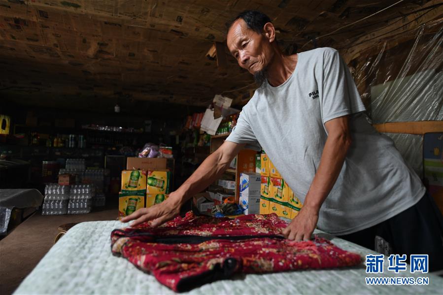 图为奚占玉拿出老伴生前穿的花棉袄(2019年8月5日摄)。 新华社记者张楠摄