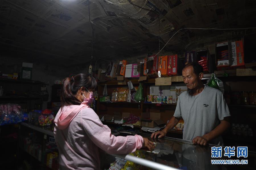 图为奚占玉(右)在家中经营的小卖店里售货(2019年8月5日摄)。 新华社记者张楠摄