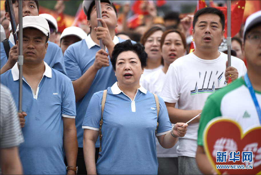 活动现场,干部职工合唱《我和我的祖国》。新华网 发(付宇鹏 摄)