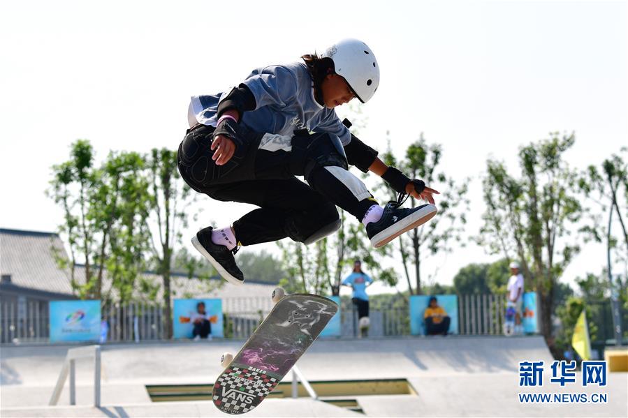 8月18日,陕西选手李正斓在滑板女子街式决赛中。 当日,2019年中国极限运动大会街式滑板比赛在河南省濮阳市清丰县展开激烈角逐。