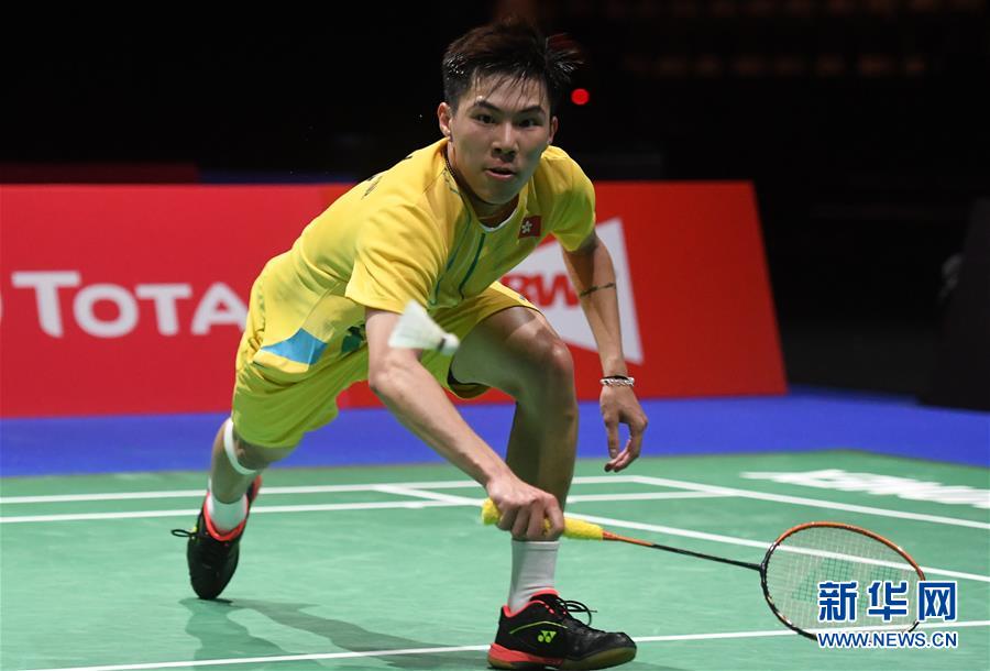 8月21日,中国香港选手李卓耀在比赛中回球。 当日,在瑞士巴塞尔举行的2019年世界羽毛球锦标赛男子单打第二轮比赛中,中国选手谌龙以2比0战胜中国香港选手李卓耀,晋级下一轮。 新华社记者李俊东摄