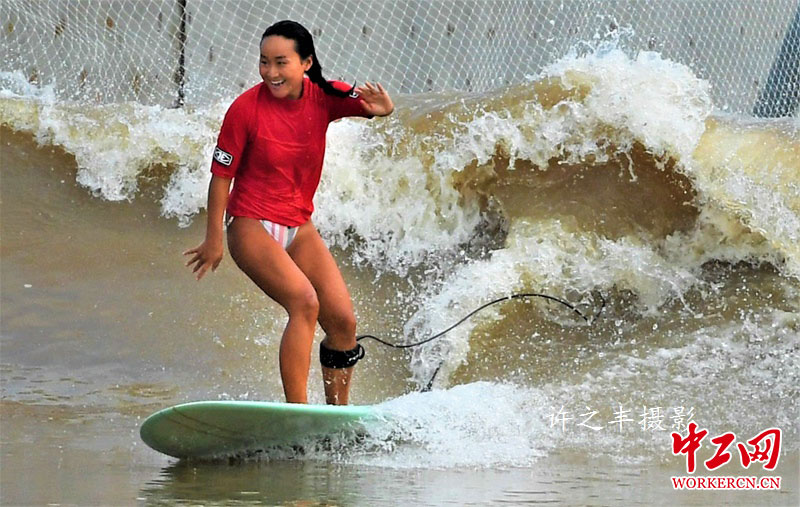 2019年8月23日,中国极限运动大会冲浪比赛在河南濮阳清丰极限运动基地进行。冲浪是以海浪为动力的极限运动,冲浪是相当惊险刺激的运动,运动员都要有很高的技巧和平衡能力,脚踏冲浪板,出没在惊涛骇浪之中。本次中国极限运动大会冲浪比赛是在水池中人工机械造浪中运动员进行冲浪比赛。工人日报-中工网许之丰摄影报道