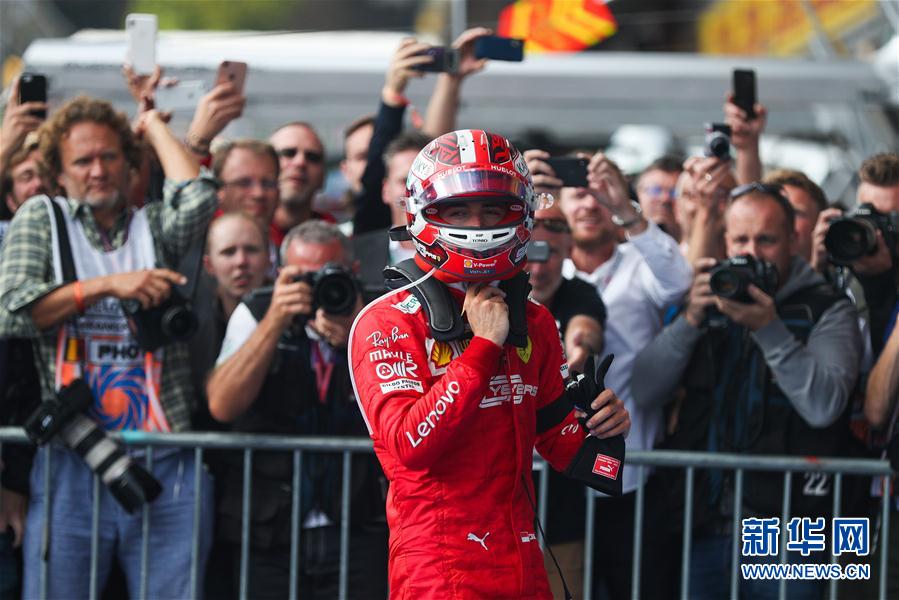 9月1日,勒克莱尔在比赛后。 当日,在比利时斯帕-弗朗科尔尚赛道举行的2019年F1比利时大奖赛正赛中,法拉利车队的摩纳哥车手勒克莱尔以1小时23分45秒710的成绩夺得冠军,梅赛德斯车队英国车手汉密尔顿和芬兰车手博塔斯分获第二、三名。 新华社记者郑焕松摄