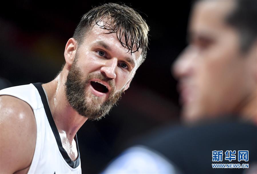 9月5日,德国队球员巴特尔在比赛中不满裁判判罚。 当日,在广东深圳举行的2019年国际篮联篮球世界杯小组赛G组比赛中,德国队以96比62战胜约旦队。 新华社记者许畅摄