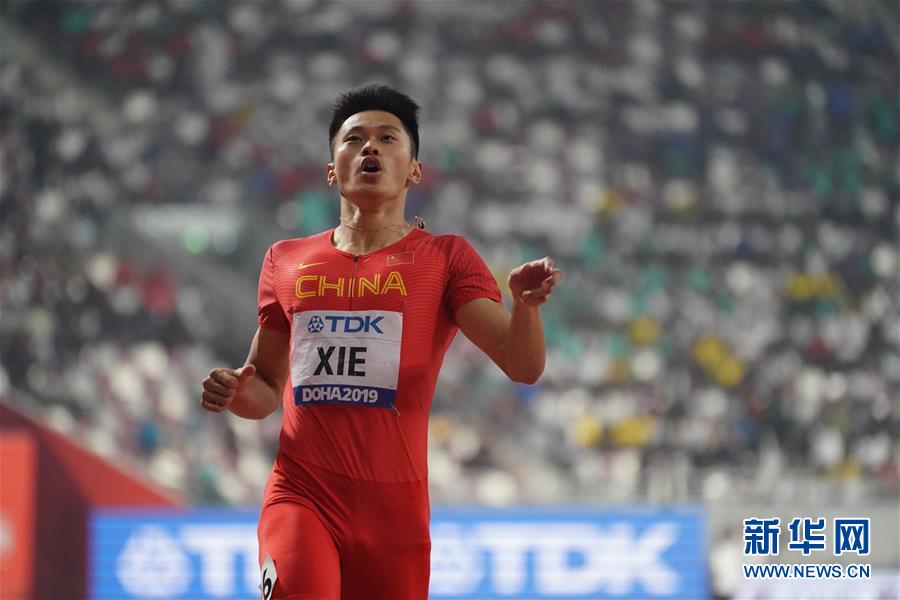 9月30日,中国选手谢震业在比赛中。 当日,在卡塔尔多哈举行的2019国际田联世界田径锦标赛男子200米半决赛中,中国选手谢震业以20秒03的成绩晋级决赛。 新华社记者 李钢 摄