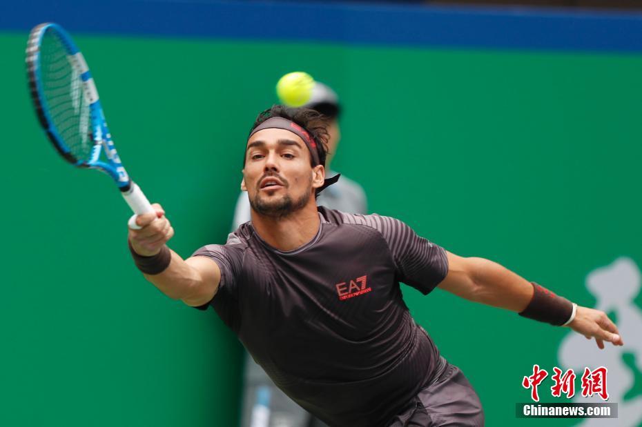 10月11日,2019上海网球大师赛继续进行,俄罗斯选手丹尼尔·梅德维德夫战胜意大利选手法比奥·弗格尼尼,挺进上海大师赛四强。图为弗格尼尼击球。殷立勤 摄