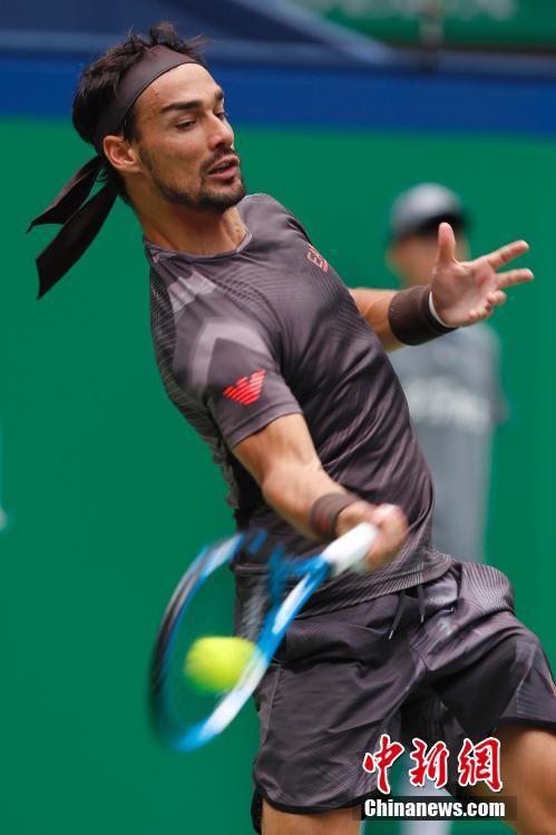 10月11日,2019上海网球大师赛继续进行,俄罗斯选手丹尼尔·梅德维德夫战胜意大利选手法比奥·弗格尼尼,挺进上海大师赛四强。图为弗格尼尼击球。殷立勤 摄