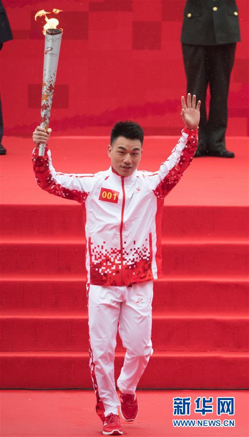 10月16日,第一名火炬手廖辉在传递火炬。 当日,第七届世界军人运动会火炬传递活动在武汉东湖绿道举行。 新华社记者肖艺九摄