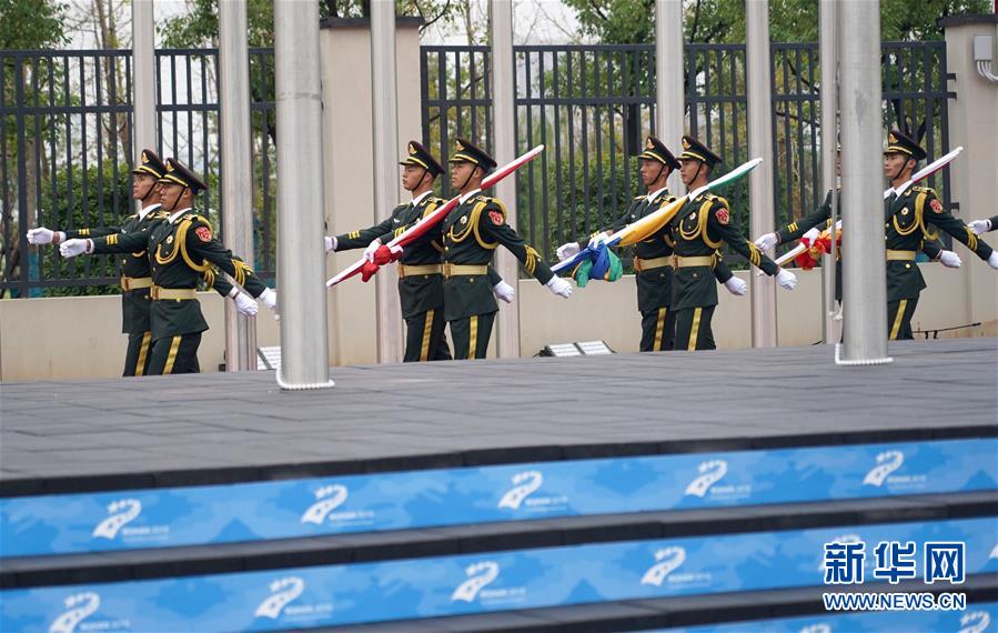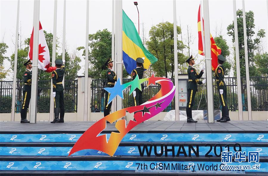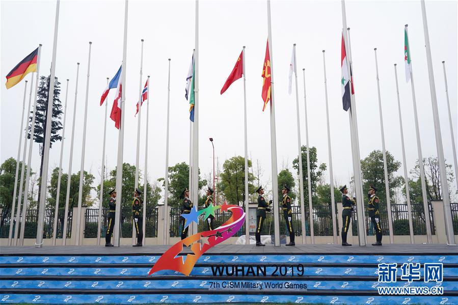 10月16日,入住军运会运动员村的部分代表团举行升旗仪式。第七届世界军人运动会将于10月18日开幕。 这是军运村升旗仪式现场(10月16日摄)。 新华社记者 万象 摄
