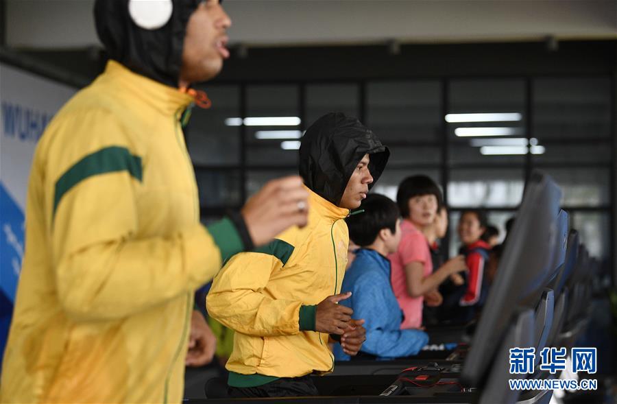 10月16日,运动员在军运村内的健身中心锻炼。 第七届世界军人运动会即将于10月18日正式开幕,各代表团陆续入住军运村。记者16日探访了军运村,村内医疗卫生服务中心、健身中心、商业服务街等一应俱全,为入住运动员提供全方位服务。各国运动员们利用正式比赛之前的时间加紧锻炼,保持身体状态。 新华社记者陈晔华摄