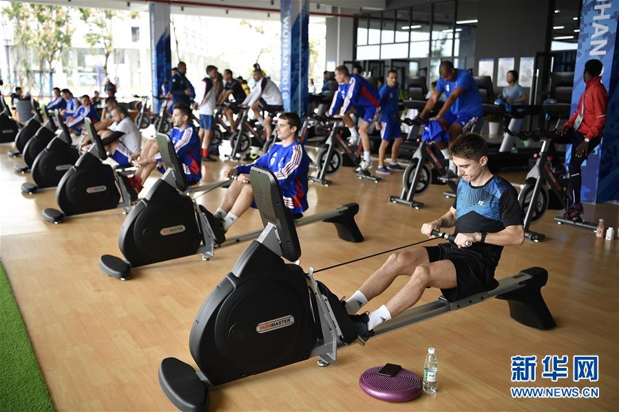 10月16日,运动员在军运村内的健身中心锻炼。 第七届世界军人运动会即将于10月18日正式开幕,各代表团陆续入住军运村。记者16日探访了军运村,村内医疗卫生服务中心、健身中心、商业服务街等一应俱全,为入住运动员提供全方位服务。各国运动员们利用正式比赛之前的时间加紧锻炼,保持身体状态。 新华社记者王鹏摄