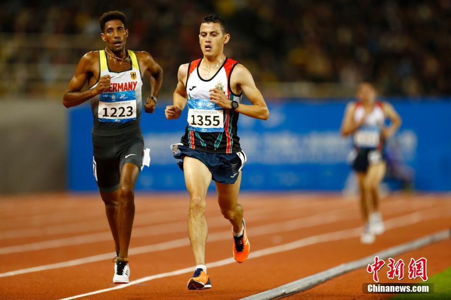 第七届世界军人运动会田径比赛在武汉五环体育中心举行。在男子一万米决赛中,来自摩洛哥的选手艾拉比(1355号)以28分44秒25夺冠。