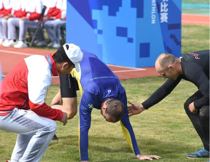 10月23日,第七届世界军人运动会田径比赛在武汉五环体育中心举行。在男子110米栏决赛中,来自俄罗斯的选手舒本科夫以13秒40夺冠。中新社记者 富田 摄