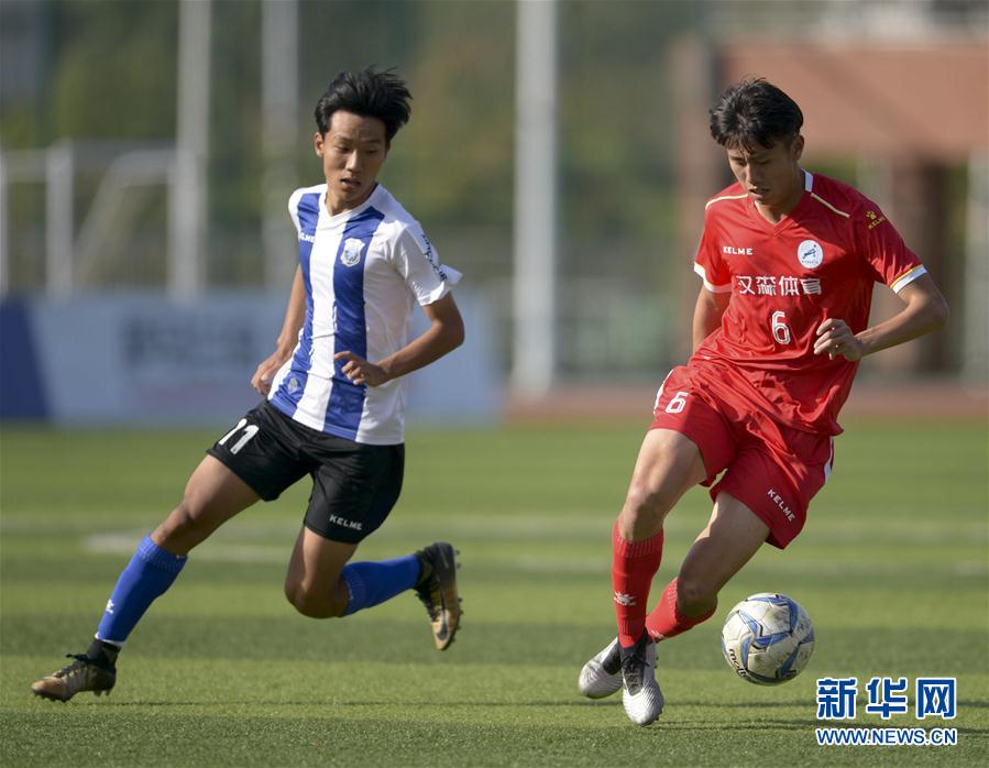 10月31日,河南省实验中学队球员申翊辰(右)和郑州二中队球员李宗灿在比赛中拼抢。 当日,在长沙举行的2019参考消息·萨马兰奇杯中国高中足球锦标赛男子组半决赛中,河南省实验中学队在常规时间内和郑州第二中学队战成0比0平,最终河南省实验中学队在点球大战中以3比1获胜,晋级决赛。 新华社发(陈振海摄)