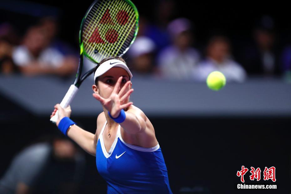 11月2日,2019深圳WTA年终总决赛在深圳湾体育中心继续进行。在一场乌克兰选手埃莉娜·斯维托丽娜与瑞士选手贝琳达·本西奇的单打半决赛争夺中,贝琳达·本西奇因伤退赛,埃莉娜·斯维托丽娜晋级决赛。图为贝琳达·本西奇在比赛中。中新社记者 富田 摄