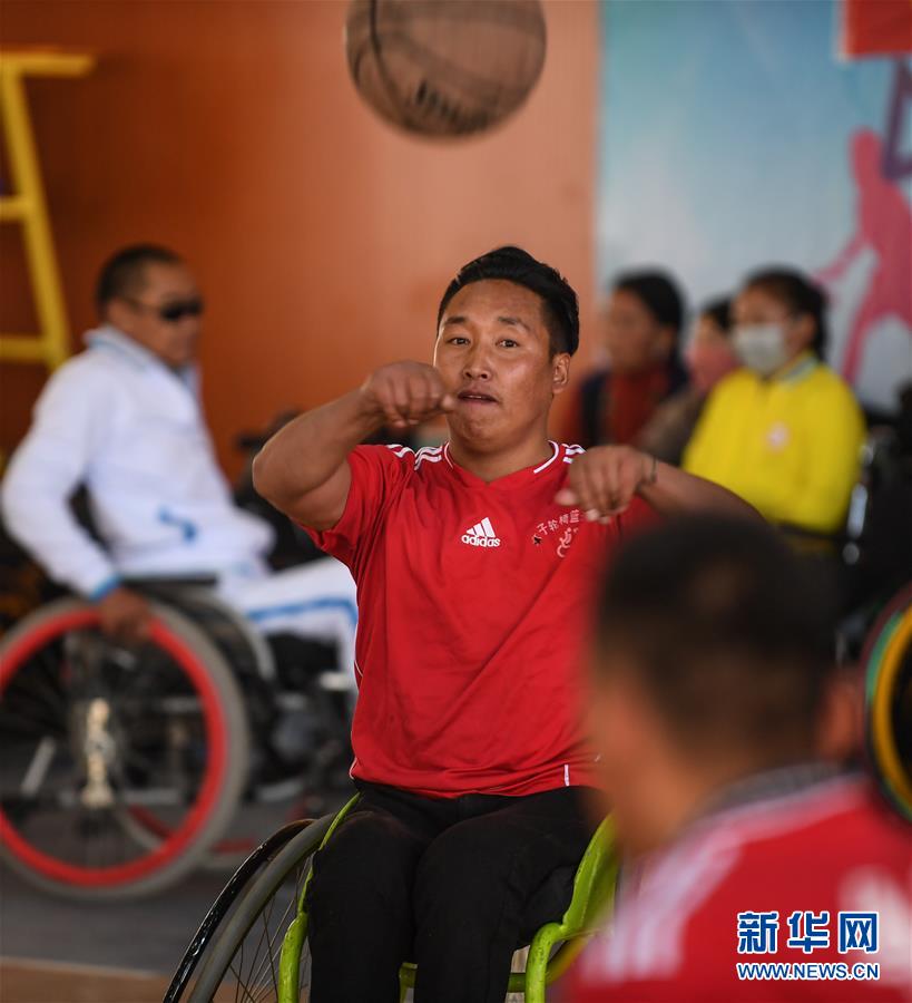 11月10日,西藏轮椅篮球队球员觉烈(中)在比赛中传球。 当日,西藏轮椅篮球队和青海省三江源轮椅篮球队在拉萨进行了一场友谊赛。成立仅两个月时间的青海省三江源轮椅篮球队客场最终以6比20不敌西藏轮椅篮球队。这场比赛也是西藏轮椅篮球队成立五年来首次和自治区外的轮椅篮球队进行的较量。 新华社记者晋美多吉摄