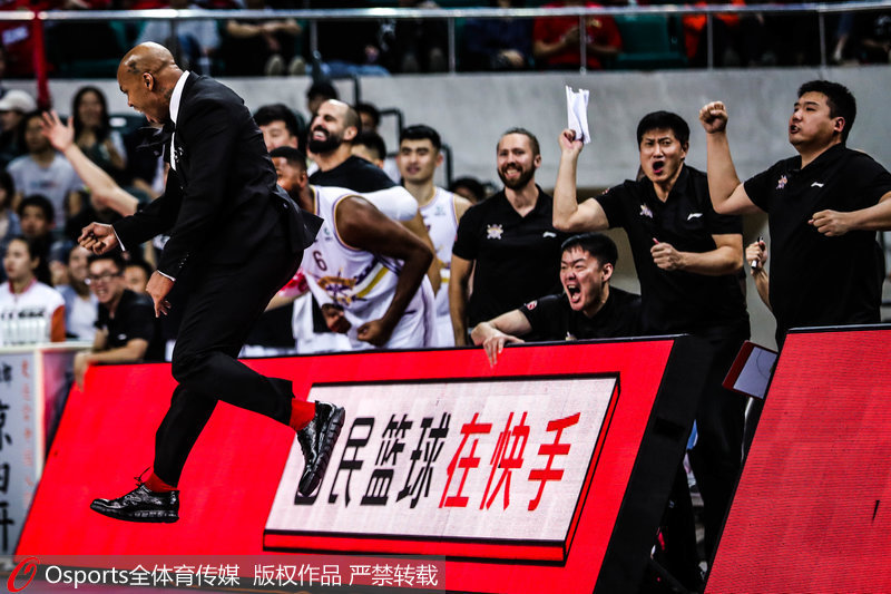 11月8日,CBA联赛第3轮,广州龙狮123:134负北京紫禁勇士,马布里兴奋跃起。
