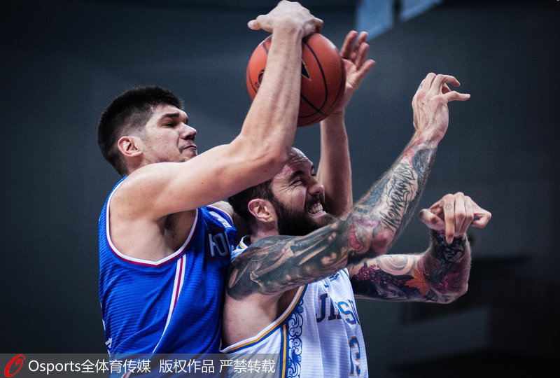 11月8日,CBA联赛第3轮,江苏肯帝亚98:92胜天津先行者,托多罗维奇在拉杜利察头上抢球。
