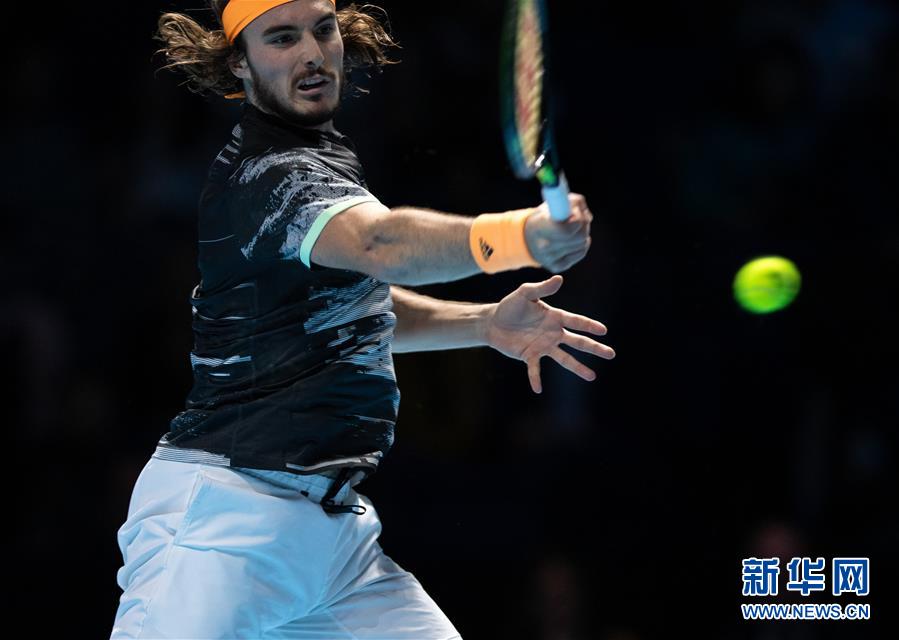 11月13日,希腊选手西西帕斯在比赛中回球。 当日,在2019ATP世界巡回赛年终总决赛第四日单打小组赛中,希腊选手西西帕斯以2比0战胜德国选手兹维列夫。 新华社记者韩岩摄