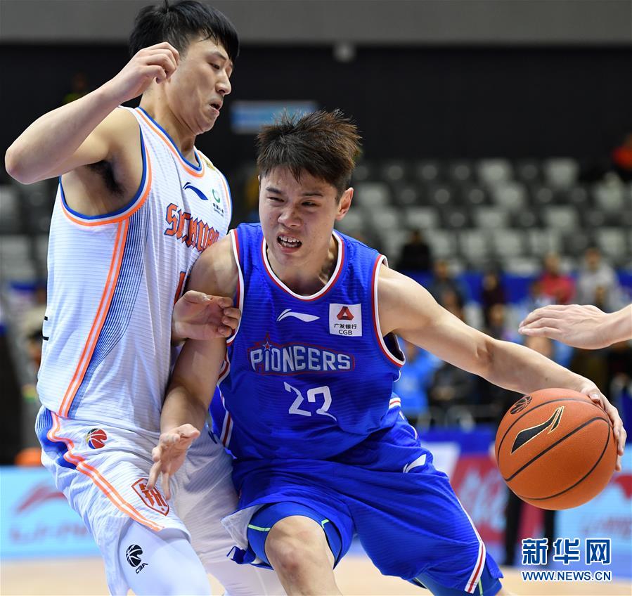 11月19日,天津先行者队球员史仪(右)在比赛中运球突破。 当日,在2019-2020赛季中国男子篮球职业联赛(CBA)常规赛第七轮比赛中,天津先行者队主场经过一个加时赛后以95比93战胜四川五粮金樽队。 新华社记者 李然 摄