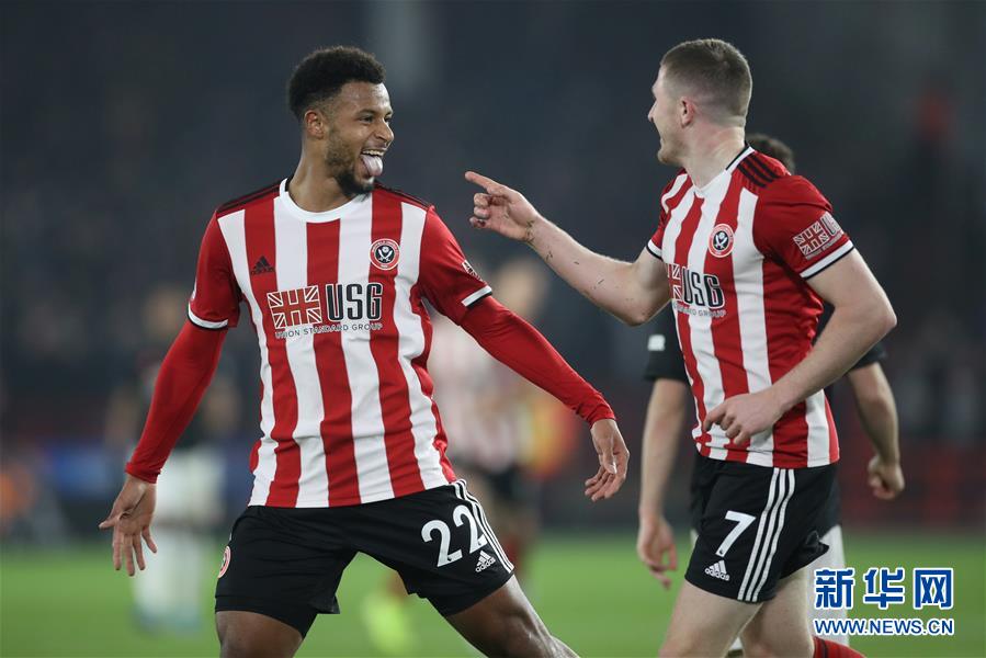 11月24日,谢菲尔德联队球员穆塞(左)庆祝进球。 当日,在2019-2020赛季英格兰足球超级联赛第13轮比赛中,曼联队客场以3比3战平谢菲尔德联队。 新华社/路透
