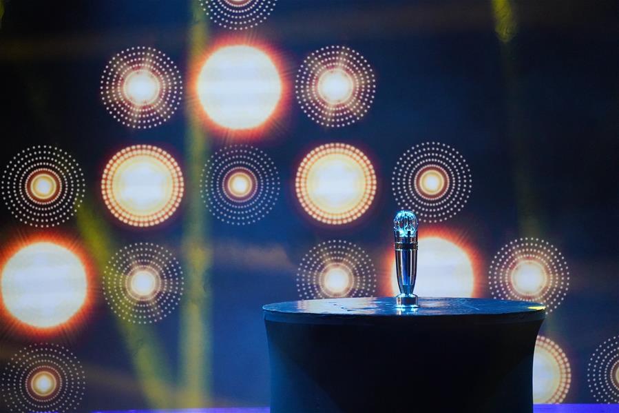 12月2日,2019亚足联年度颁奖典礼在香港举行。 这是颁奖典礼上的亚洲足球小姐奖杯(12月2日摄)。 新华社记者吕小炜摄