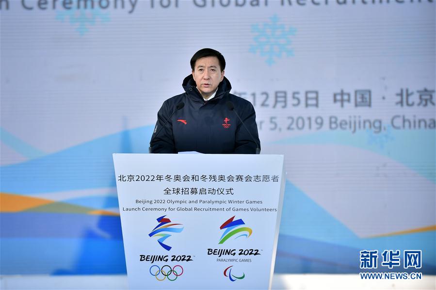 12月5日,北京市副市长、北京冬奥组委执行副主席张建东在仪式上致辞。 当日是第34个国际志愿者日,北京2022年冬奥会和冬残奥会赛会志愿者全球招募正式启动。北京冬奥组委计划招募2.7万名冬奥会赛会志愿者,1.2万名冬残奥会赛会志愿者。 新华社发(彭子洋摄)