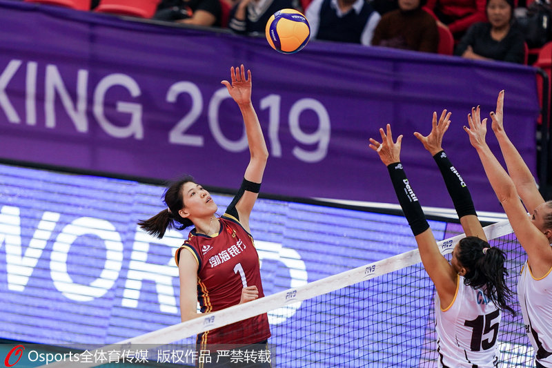 女排世俱杯小组赛 朱婷受伤天津3-2险胜巴西海滩