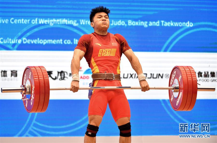 12月10日,中国选手冯吕栋在比赛中。 当日,在天津举行的2019年举重世界杯男子67公斤级比赛中,中国选手冯吕栋以抓举151公斤、挺举170公斤、总成绩321公斤夺得该级别抓举和总成绩冠军及挺举季军。 新华社记者李然摄