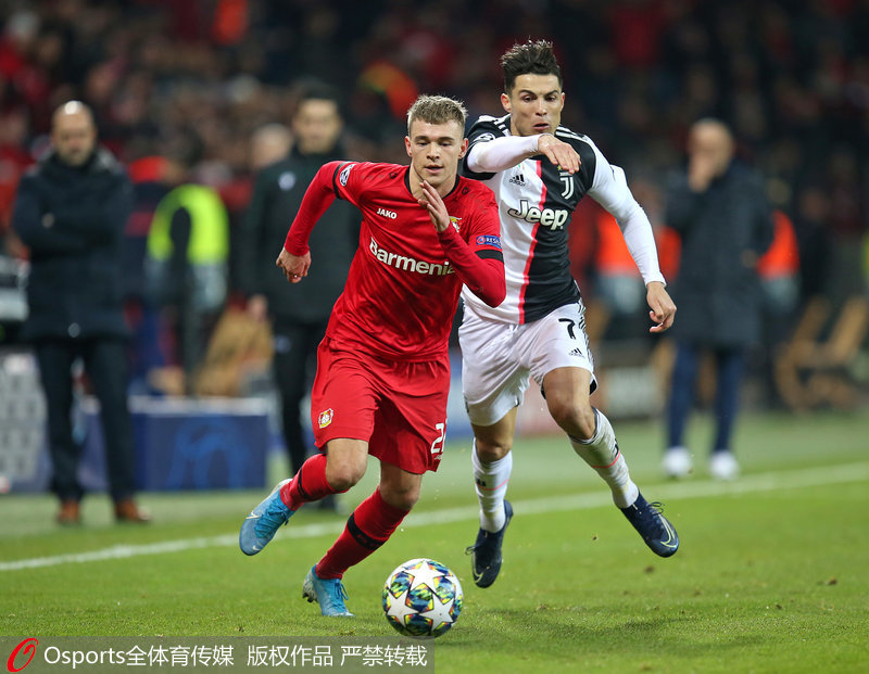 人民网北京12月12日电(袁无缺)北京时间今日凌晨,2019-20赛季欧洲冠军联赛小组赛D组最后一轮展开厮杀。勒沃库森主场0-2输给尤文图斯屈居小组第三,无缘晋级十六强,尤文图斯则以小组赛五胜一平的不败战绩昂首出线。