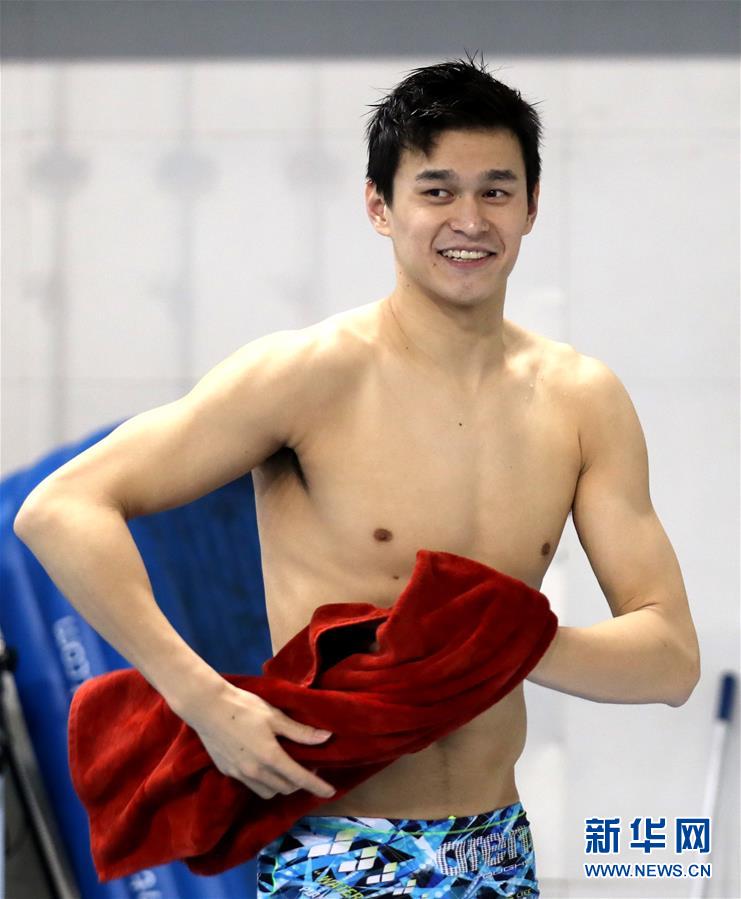 12月16日,国家游泳队队员孙杨在训练后。 近期,中国国家游泳队队员在北京国家体育总局游泳馆进行训练,备战东京奥运会。 新华社记者丁旭摄