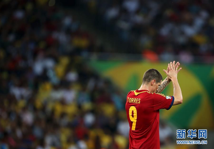 图为2013年6月20日,在2013年联合会杯足球赛B组对塔希提队的小组赛中,西班牙队球员托雷斯庆祝进球。 新华社记者廖宇杰摄