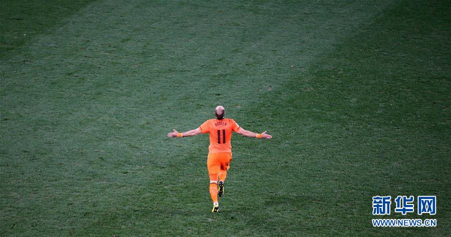 图为2010年7月6日,荷兰队球员罗本在与乌拉圭队的2010南非世界杯足球赛半决赛中庆祝进球。 新华社记者廖宇杰摄