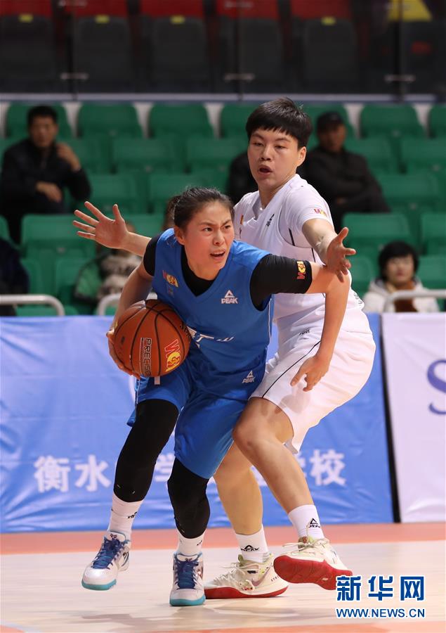 12月24日,新疆体彩队球员王思雨(左)在比赛中带球突破。 当日,在2019-2020赛季中国女子篮球联赛(WCBA)常规赛第14轮比赛中,河北衡水湖队主场以77比88不敌新疆体彩队。 新华社记者 朱旭东 摄